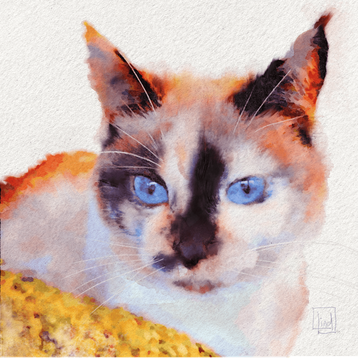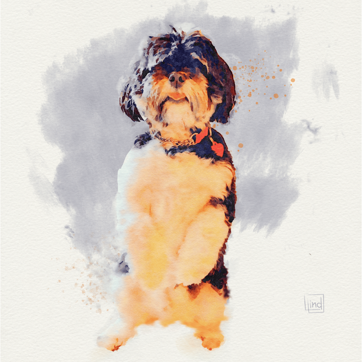 Hand Painted digital watercolour of your beloved pet using Affinity Photo 2 and Rebelle 8.